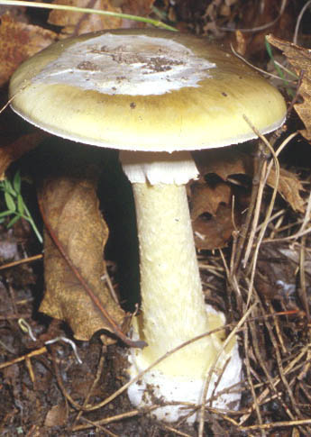 This largish fungus, known infamously as the Death Cap, accounts for more than 90% of fungus-related poisoning deaths in Europe. Amanita phalloides is quite a common species.