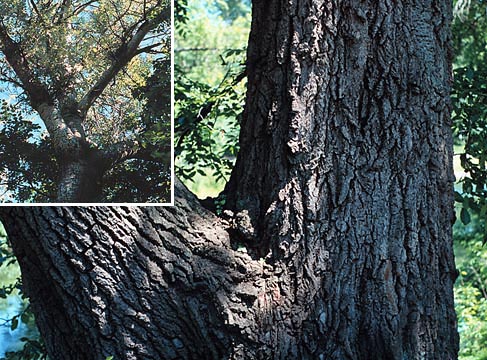 The bark is pale greenish white and smooth on young trees, becoming grey and
